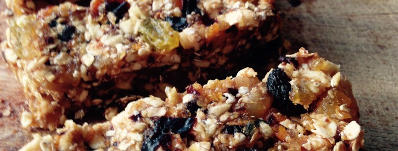 Gewelde abrikozen, rozijnen, lijnzaad, havermout- of notenreep